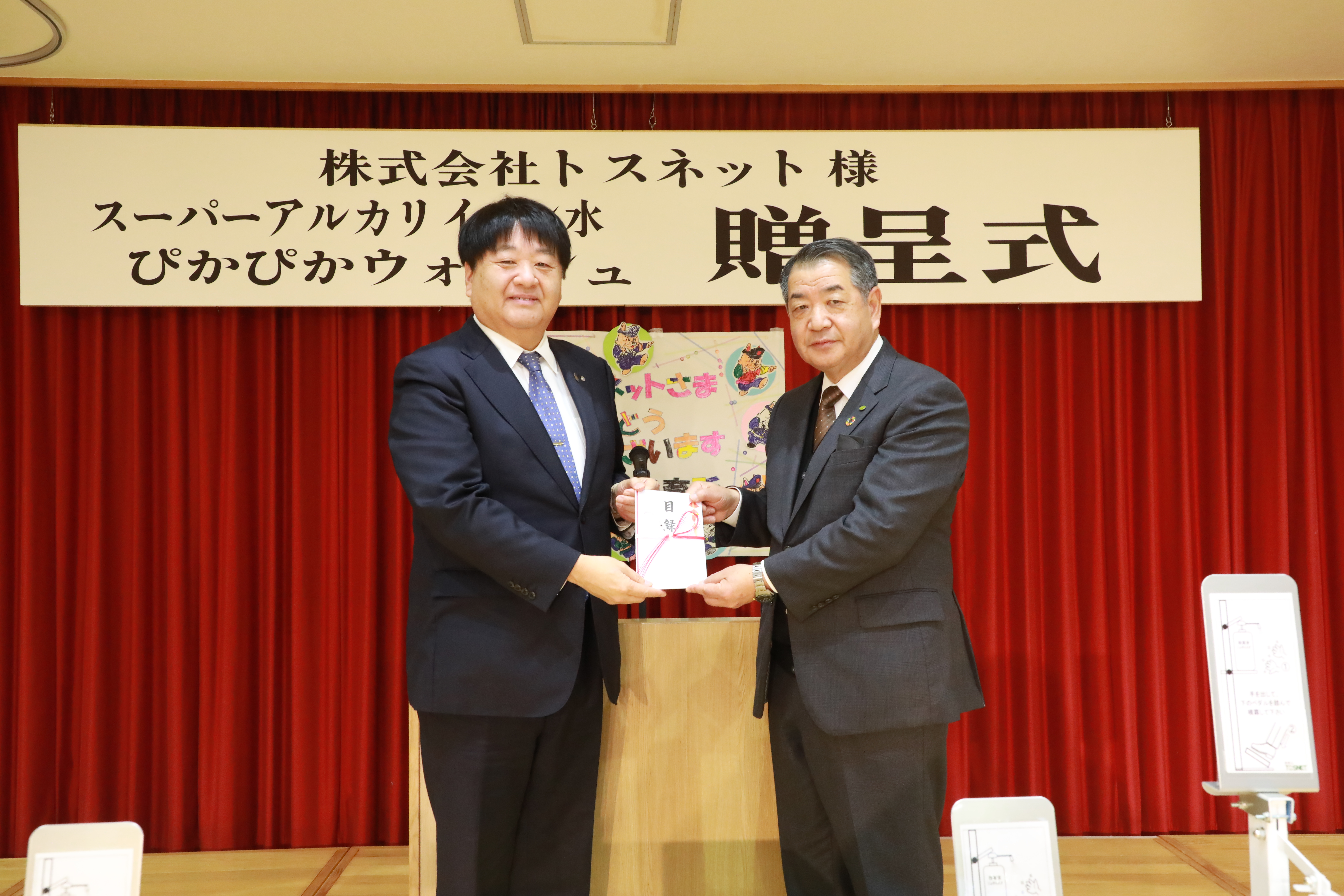 株式会社トスネットは、2025年12月22日に宮城県亘理町保育施設にてご利用いただけるよう「スーパーアルカリイオン水ぴかぴかウォッシュ」及び「トスガード・フットワン」を寄贈いたしました。子どもたちが安心して学び・遊ぶことができるよう、衛生と安全の確保に伴う支援の一環として提供いたしました。今後も弊社グループは、様々なセキュリティフィールドを通して、多くの人々が笑顔になり、安心して暮らせる社会づくりに貢献してまいります。